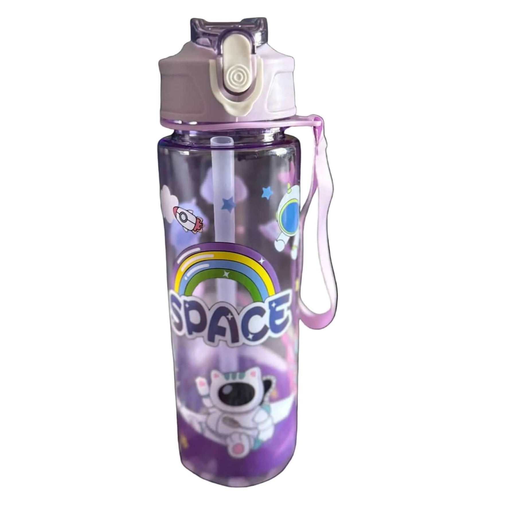 Purple kids space-themed 21oz water bottle with straw for school and outdoor use