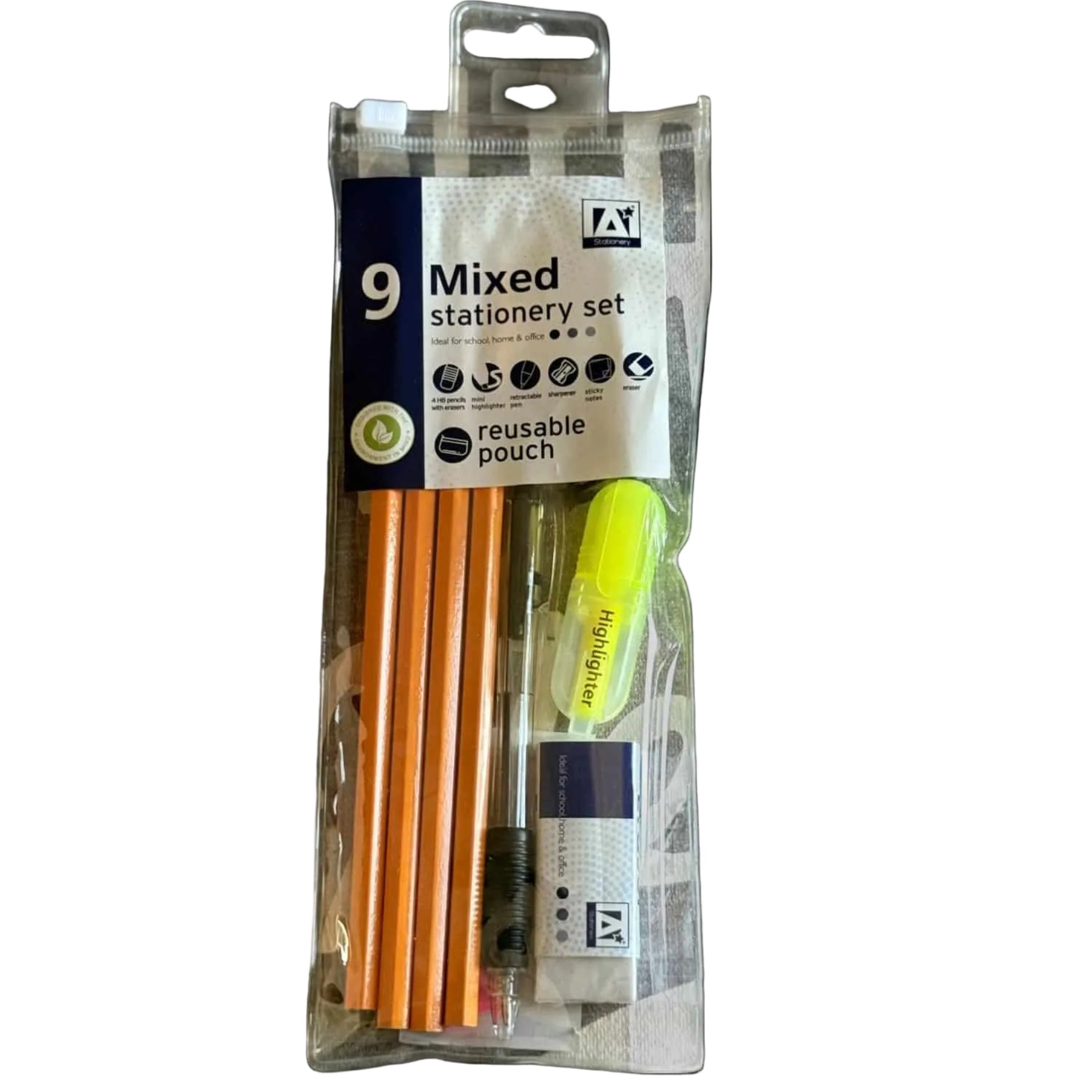 The 9pc Mixed Stationery Set is a versatile collection of essential supplies for children. This set includes pens, pencils, and other creative tools, making it perfect for school, homework, arts, and crafts activities.
