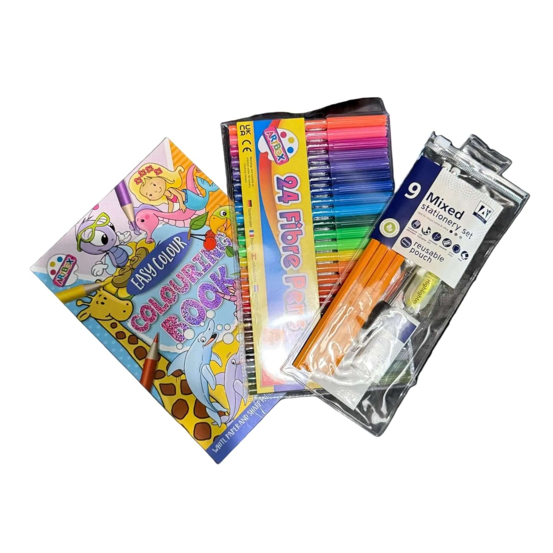 The Bundle – Blue Colouring Book, 24 Felt Pens & 9pc Stationery Pack is designed to inspire creativity and hands-on learning. The colouring book offers engaging pages, while the felt pens and stationery tools support colouring, drawing, and writing activities.