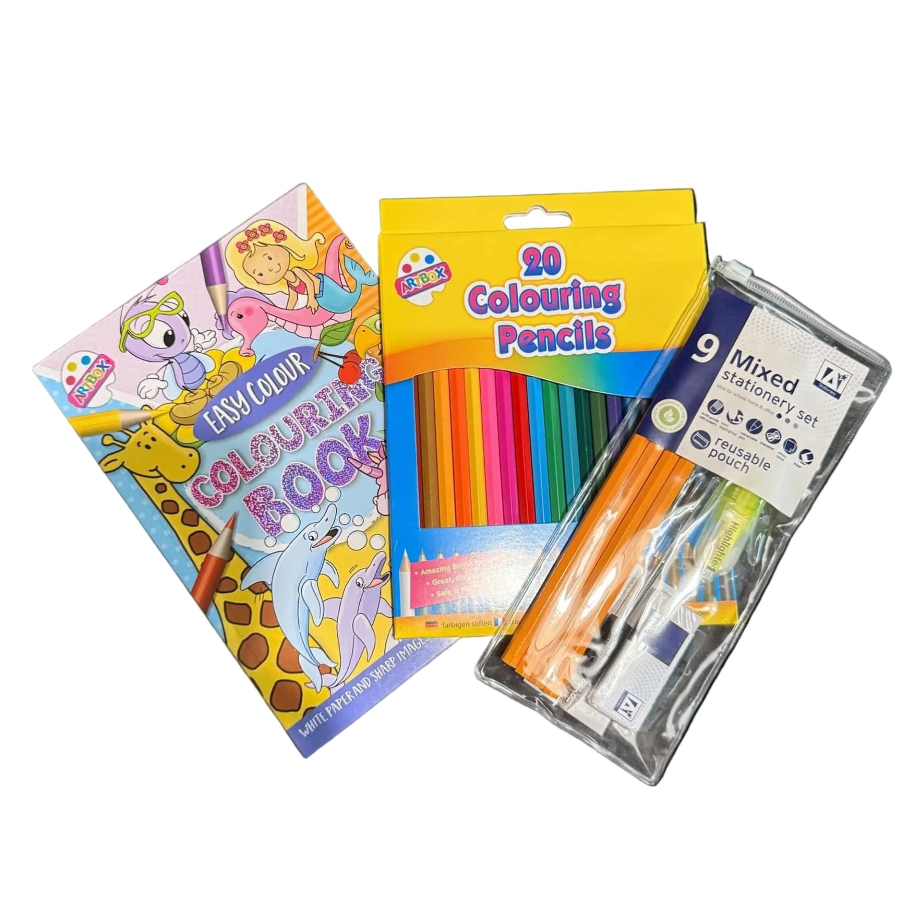 The Bundle – Blue Colouring Book, 20 Colouring Pencils & 9pc Stationery Pack is designed to inspire creativity and hands-on learning. The colouring book encourages artistic expression, while the colouring pencils and stationery tools support drawing, writing, and creative activities.