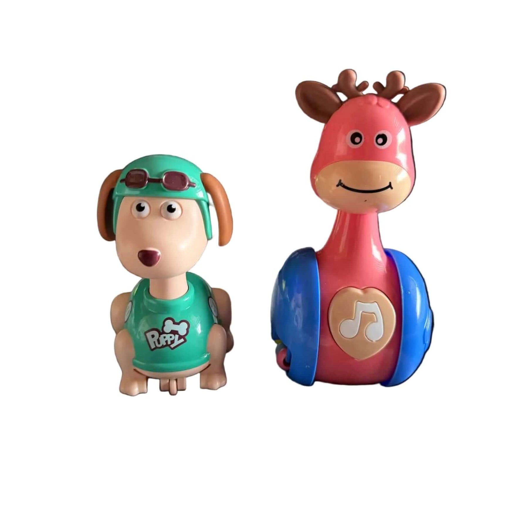 Interactive Deer Tumbler Toy for Toddlers (Pink) and Adorable Press-and-Go Puppy Toy for Toddlers (Green)